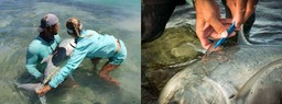 The fieldwork has already started with Drs Danylchuk and Griffin from the University of Massachusetts Amherst is assisted by a team made up of Blue Safari staff and ICS, all 15 milkfish have been tagged with acoustic transmitters (a feat very few believed would be possible in 10 days!) with a few remaining fish needed to conduct blood work.