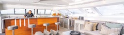 Living Space: Open Plan Saloon & Galley, Spacious Deck Seating and Trampoline, Spacious Aft Deck with Dining and BBQ, Bridge Seating & Lounge Area